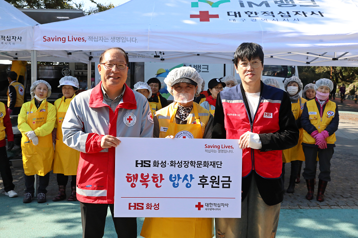 HS화성(회장 이종원)은 29일, 대구 두류공원 일대에서 대한적십자사 대구지사(회장 배인호)와 함께 ‘행복한 밥상(무료급식)’ 후원 및 봉사활동을 펼쳤다고 밝혔다. 이번 행사는 지역 내 취약계층과 독거 어르신 등